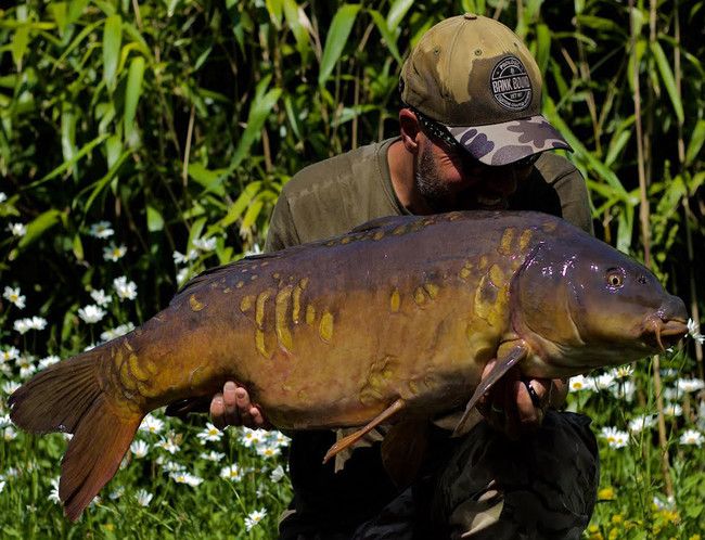 Adam said this on his great bit of opportunist angling. “A short stalking trip in baking conditions saw this incredible Leney mirror grace my net. I hooked him on a freelined bait a foot from the bank. Reminds me of the long old Savay carp – what a creature!”