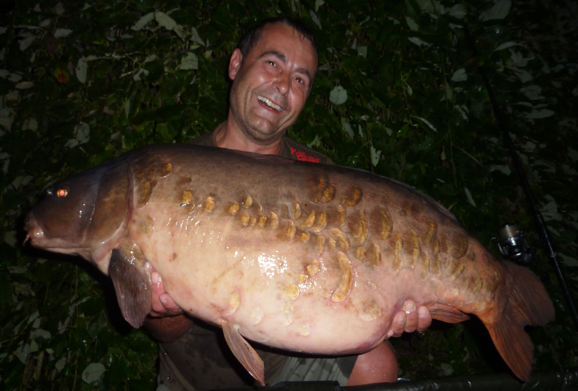 Simon would be the first to admit he had been struggling on the Main Lake and the Stevenage angler reckoned a change in tactics was needed. Feeling the fish were in a feeding mood he decided to fill it in with his own homemade boilies. A smooth clay patch at 60yards was duly found in the Left Hand Point Swim and 10kg of bait introduced. This tactic paid off handsomely and the first night saw him smash his P.B. with the much sought after Woodcarving pulling the needle on the scales round to 41lb 7oz.
